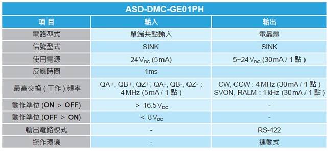 搭配 ASD-DMC-GA01主機(jī),可擴(kuò)充 1組 4M 高速脈沖界面